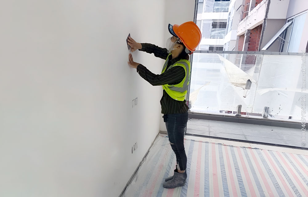 • Tháp Ruby và Opal - Thi công bả ma tít trong căn hộ tầng 24