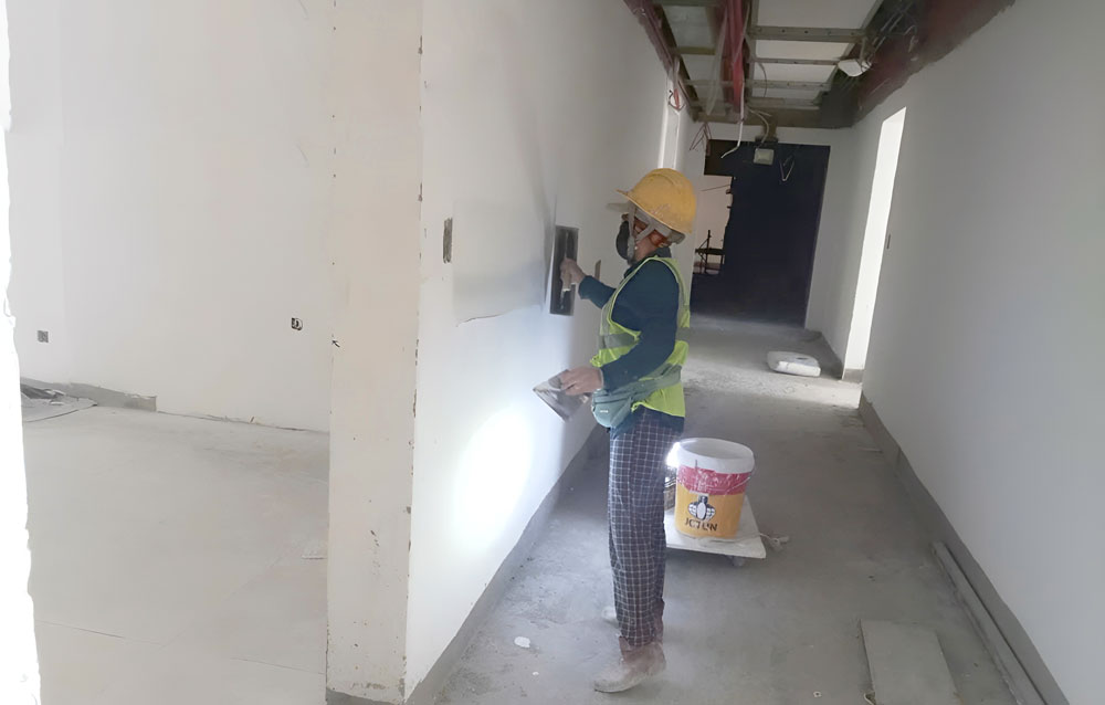 Tháp Ruby và Opal - Thi công bả ma tít hành lang tầng 23