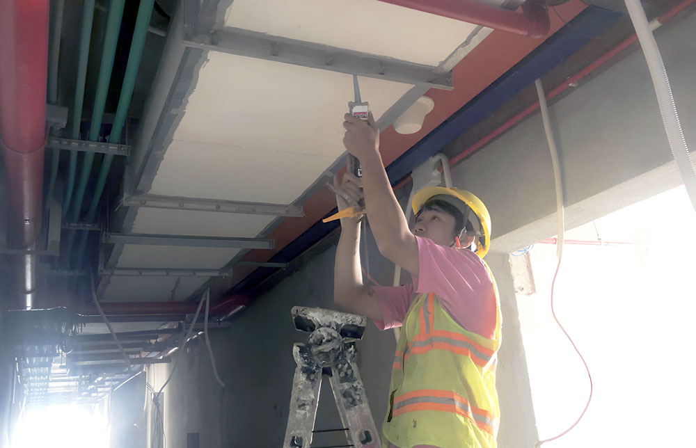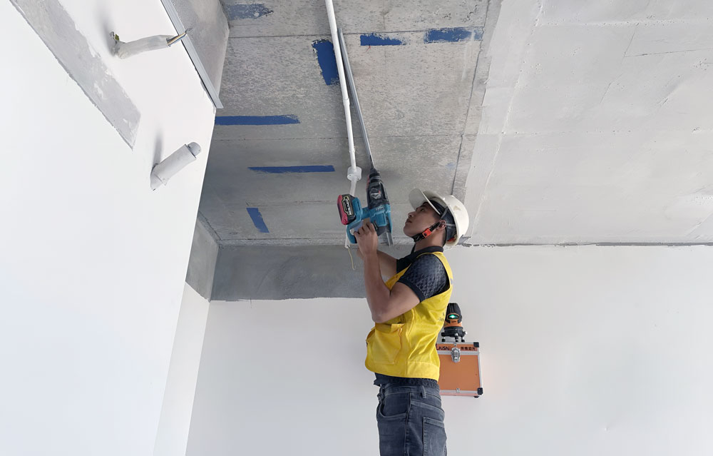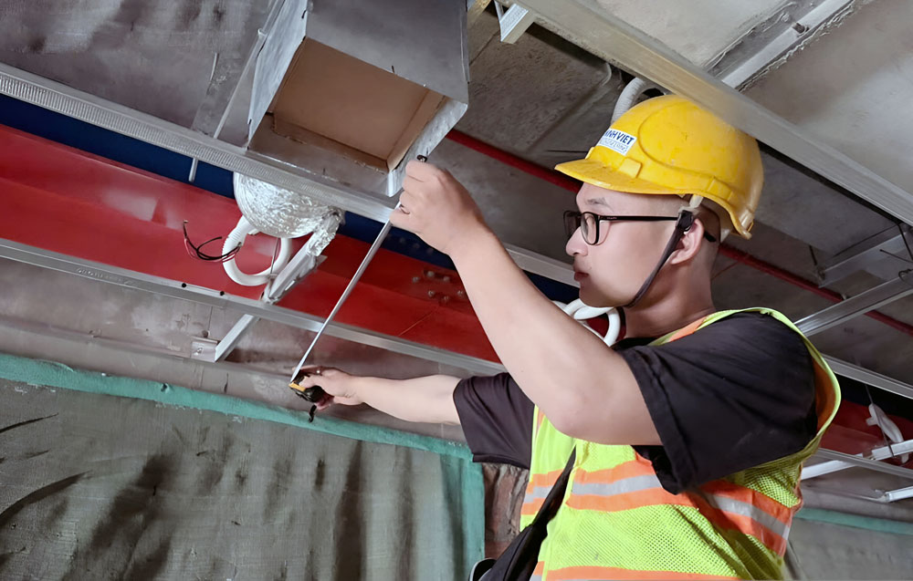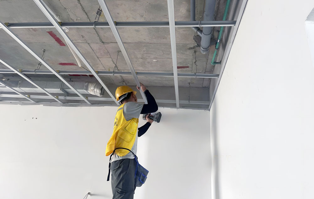 Thi công đóng khung trần thạch cao tầng 27