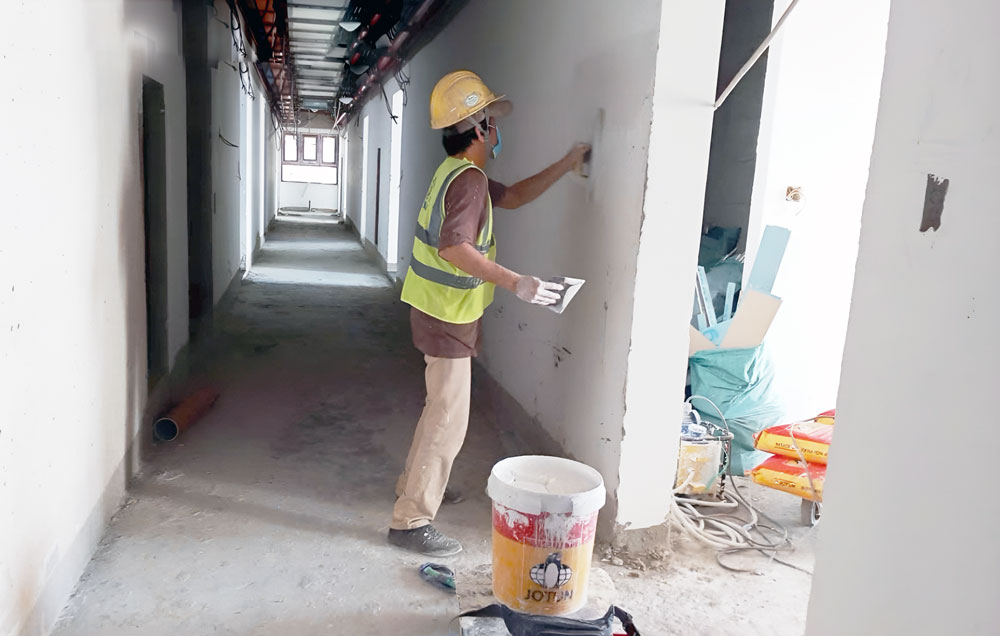 • Tháp Ruby và Opal - Thi công bả ma tít hành lang tầng 23